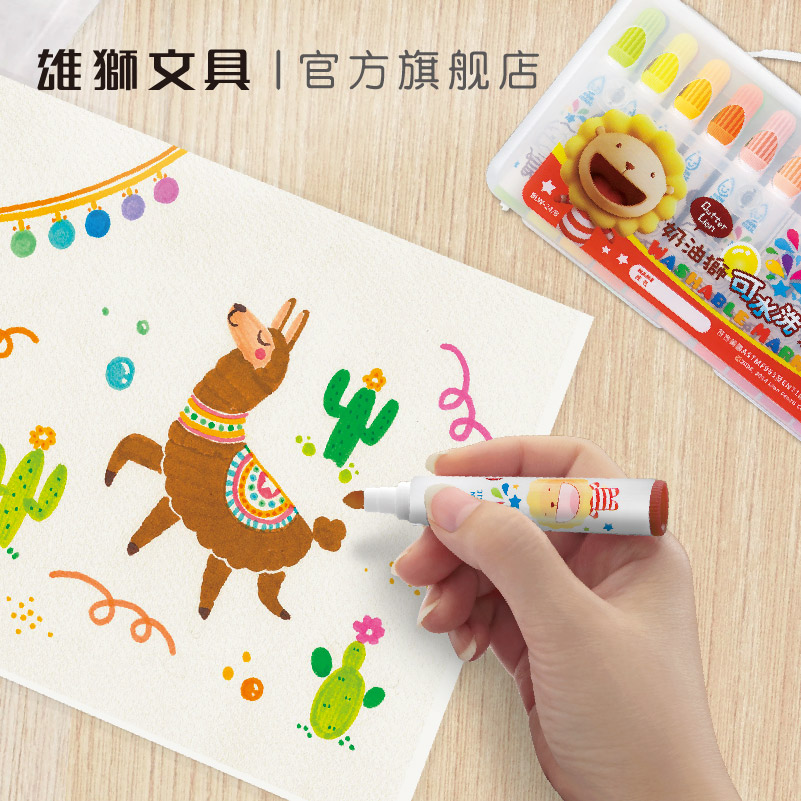 Male lion washable watercolor pen 24 24 36 48 color safe Non-toxic Children Fine Art Professional Color Pen Cream Lion Color Pen Kindergarten Elementary School Pupil Painting Graffiti Brush