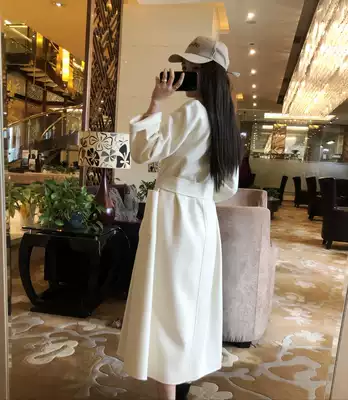 Fei Qian 2021 high-end new labbro white long version of water corrugated cashmere coat women over the knee double-sided Velvet