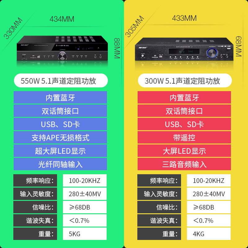 Common version (300W) Flagship version (550W) Flagship version Bring your own dual mic power amplifier sound All (red) power amplifier sound All (black)