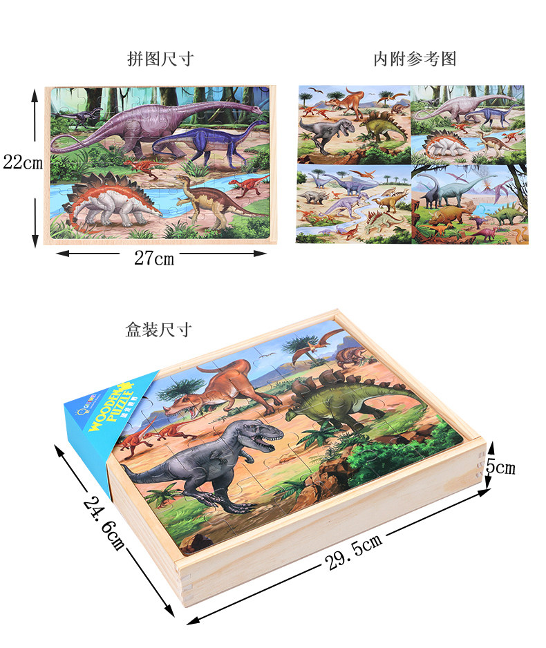 12-24-36-48-66-88 100 pieces of dinosaur puzzle children's educational boys and girls wooden wooden assembly toys