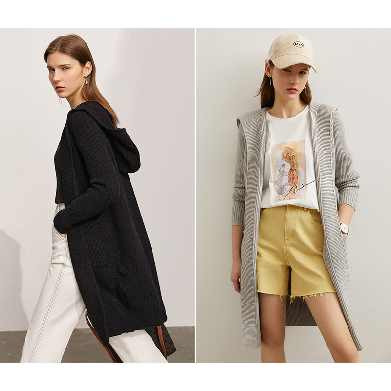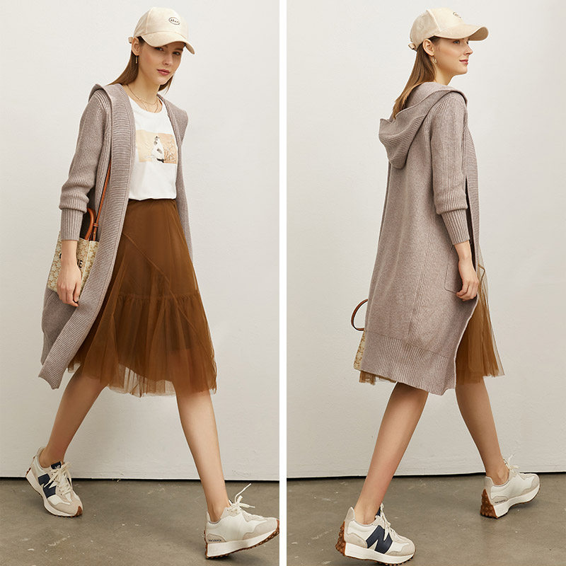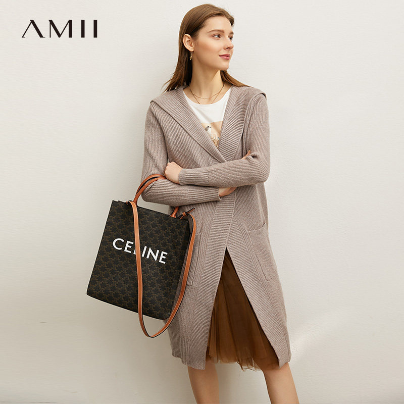 Amii Lazy Wind Sweater Jacket Women's 2022 Fall New Loose Hooded Mid-Length Knit Sweater Outer Cardigan