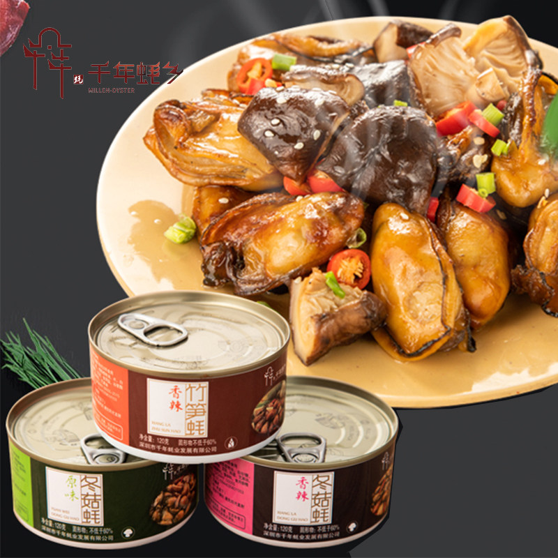 Guangdong Shenzhen specialty Shajing oyster canned spicy shiitake mushroom oyster instant food millennium oyster township snack scallop snail meat