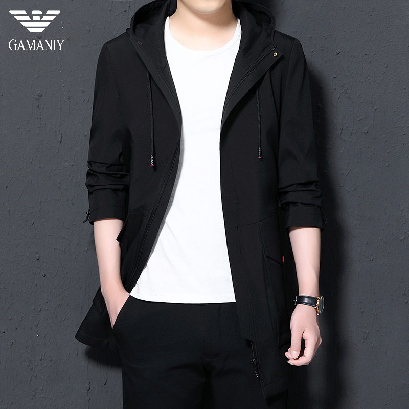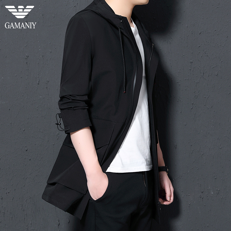 Chiyamanyanka with its colour winewear men's medium long version Lianhood Korean version trendy spring fall men's clothing casual jacket