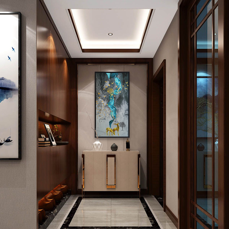 New Chinese style entrance decoration painting Living room bedroom hair backgammon painting features hand embroidery Animal study mural