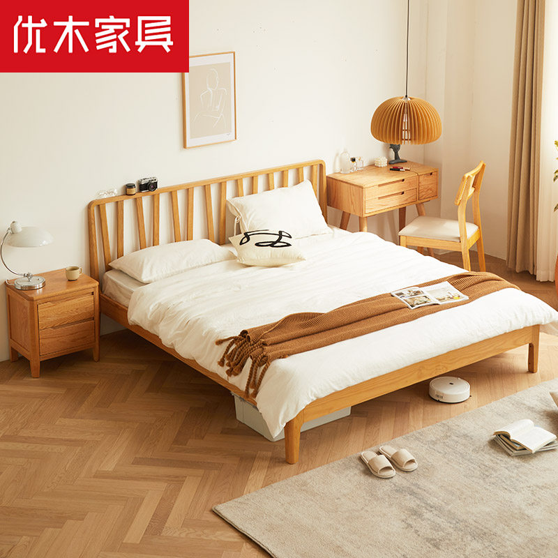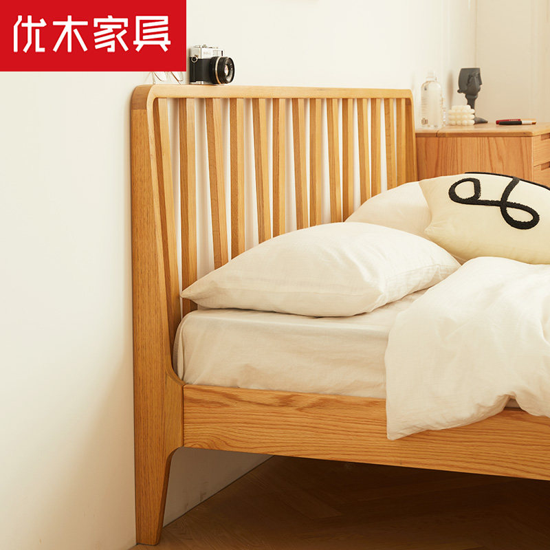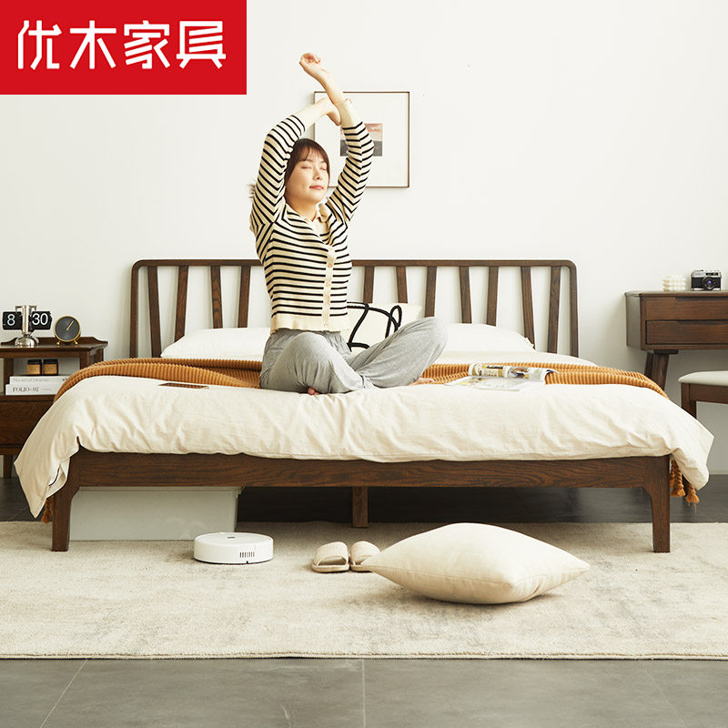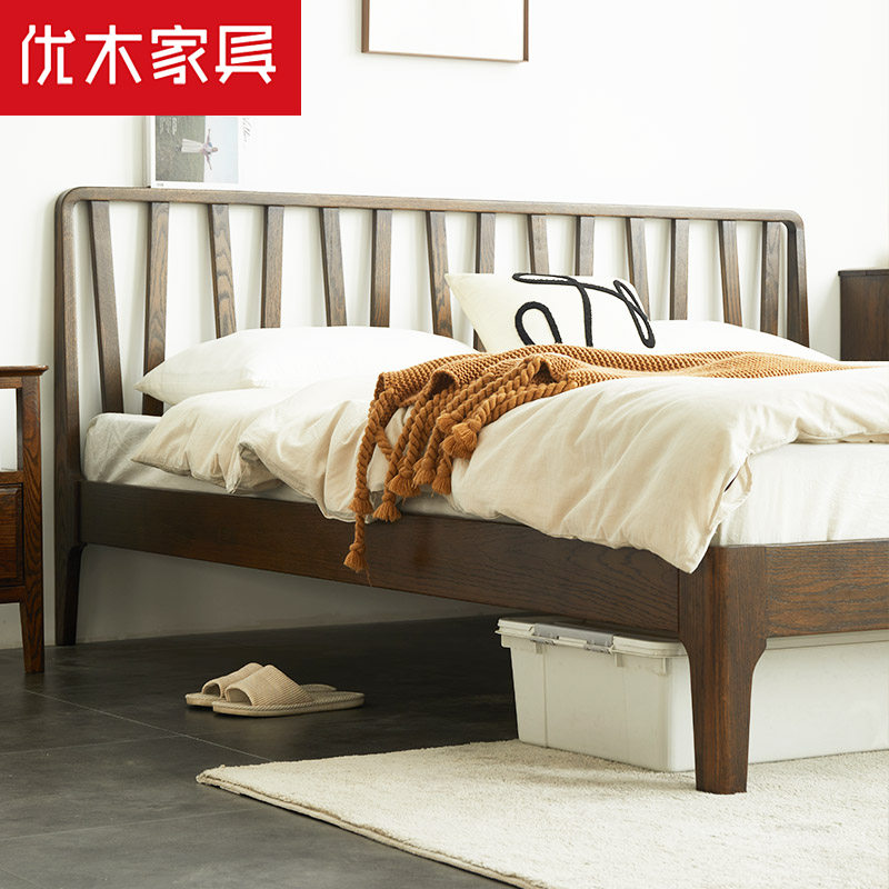 Excellent wood furniture pure solid wood bed 1 8 meters double bed 1 5 meters Nordic minimalist bedroom bed North American oak bed log