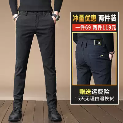 Autumn and winter clothes plus velvet thick long pants men's casual pants middle-aged dad loose straight tube slim body grinding spring and autumn