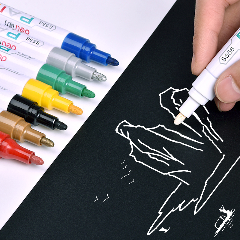 Deli paint pen Color paint note number white paint does not fade Tire mother pen High-gloss waterproof white paint metallic color painting shoes graffiti large quick-drying silver paint pen Industrial fill color shading
