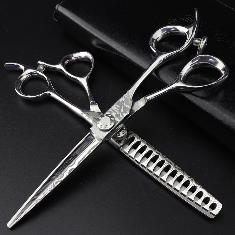 New Damascus hair knife hair stylist 6 inch flat scissors tooth scissors Hair salon incognito tooth scissors play thin hair scissors
