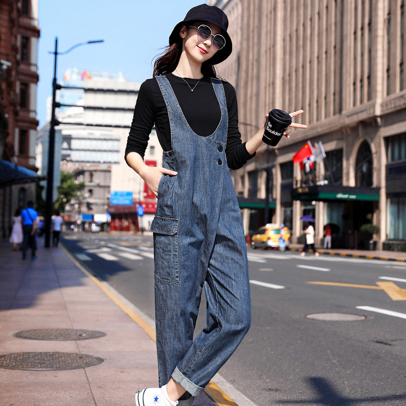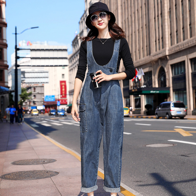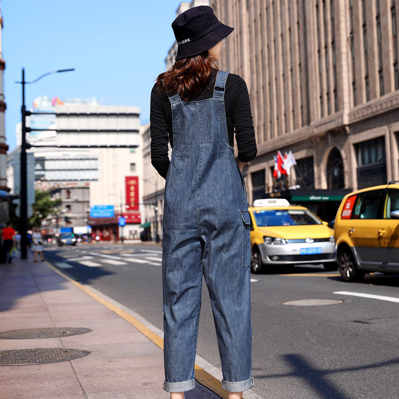 2022 Spring and autumn new Korean version fashion minus age denim back belt pants women's clothing online red pop temperament one-piece long pants-Taobao