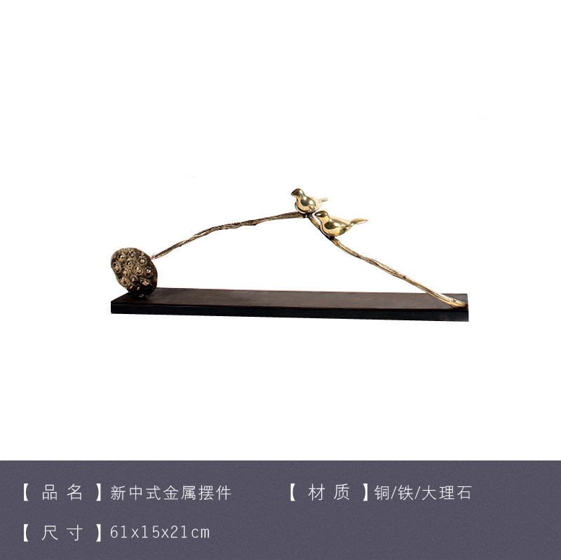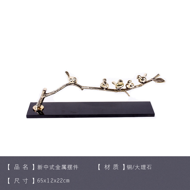 Modern New Chinese style Bronze Small Bird Swing Piece Golden Soft Adornment Hotel Genguan Bogu Shelf Furnishing-like room