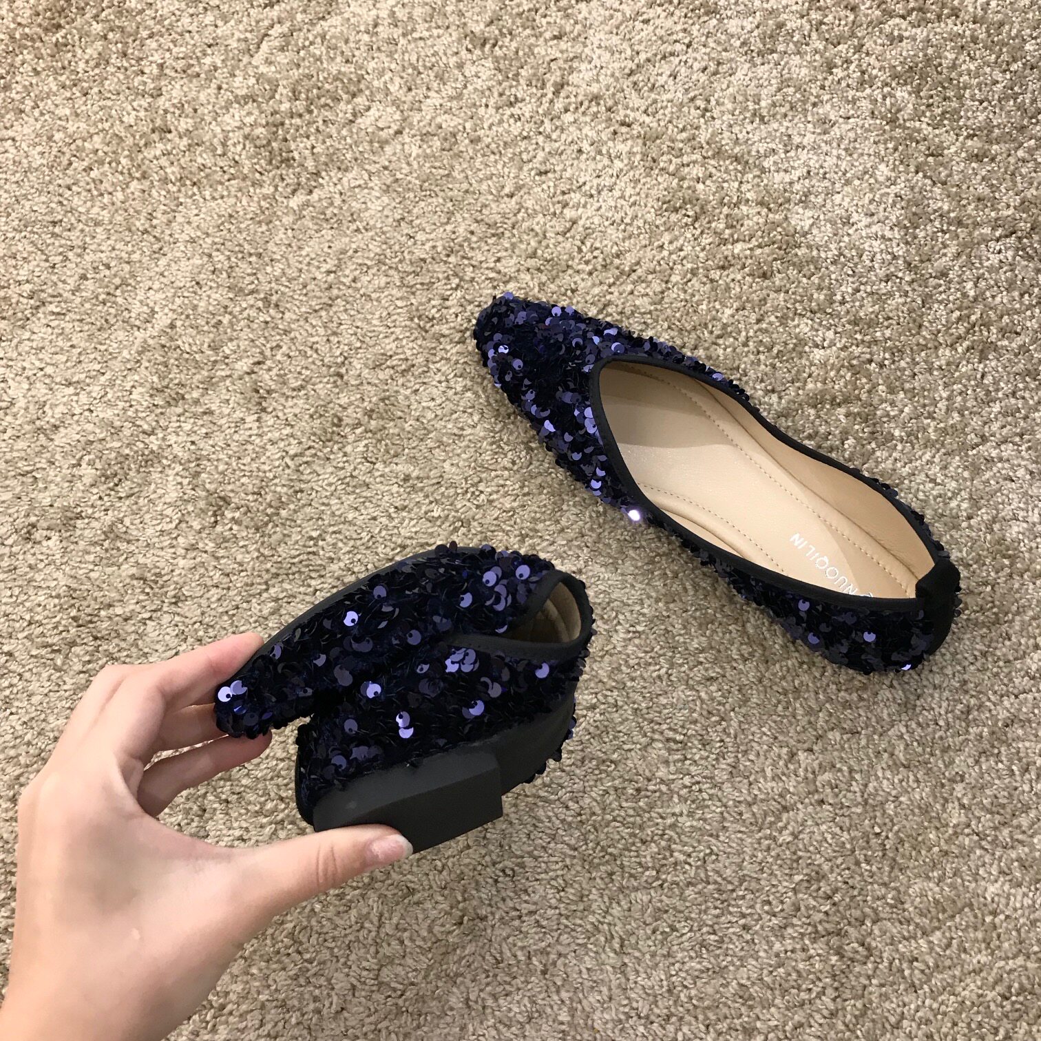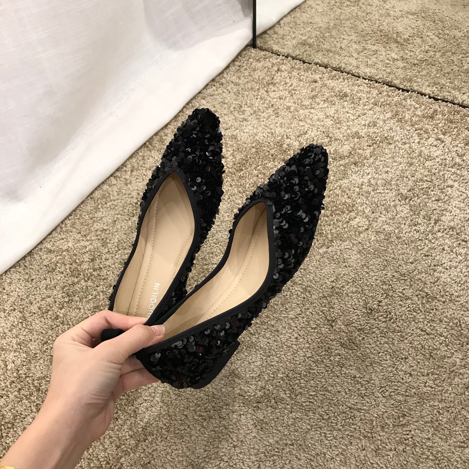 Flat beanie single shoe women's shoes 2021 new autumn sequin shallow French niche summer black scoop shoes