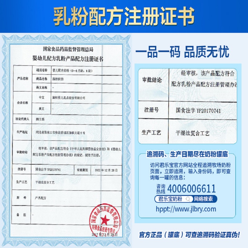 Jun Lebao Flag Yellow Pot Milk Powder 1 Segment Infant Formula Milk Powder for a section of 400g gram Flagship Official Web