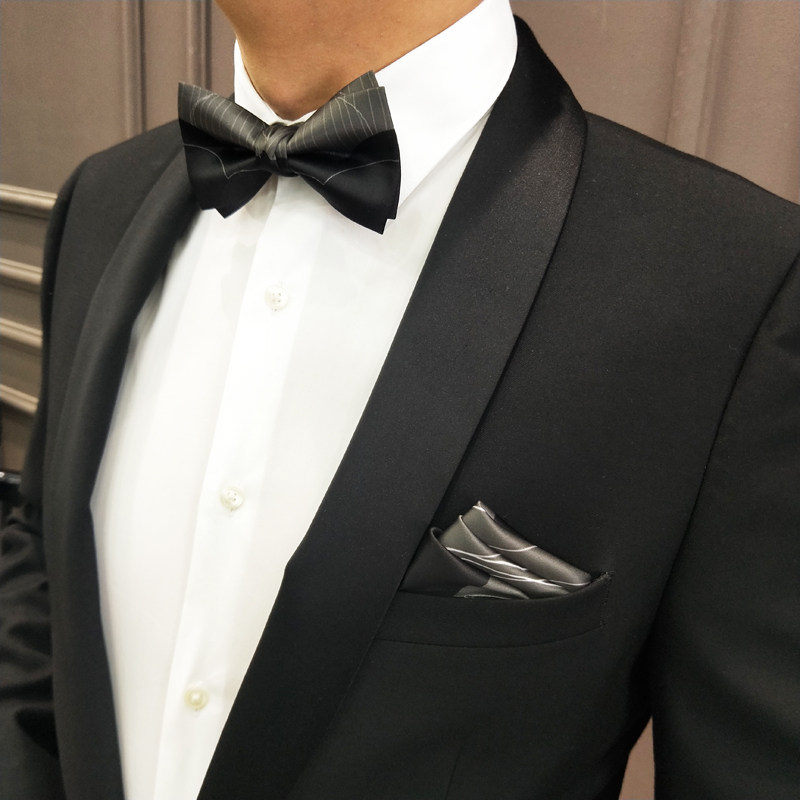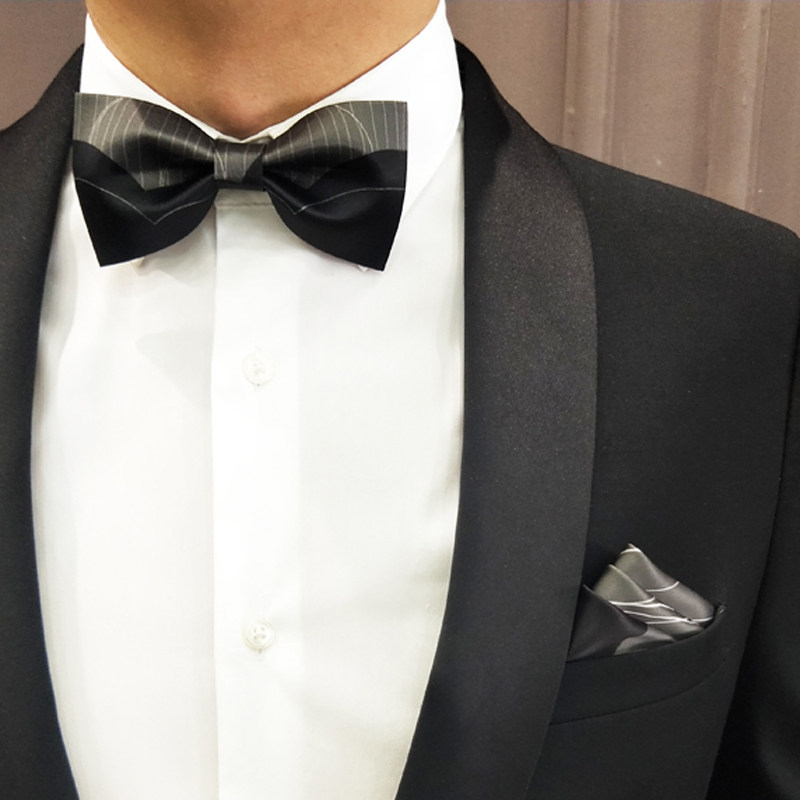 Hyde Park groom best man wedding Black silver Gray fashion high-end trendy bow men's bow tie