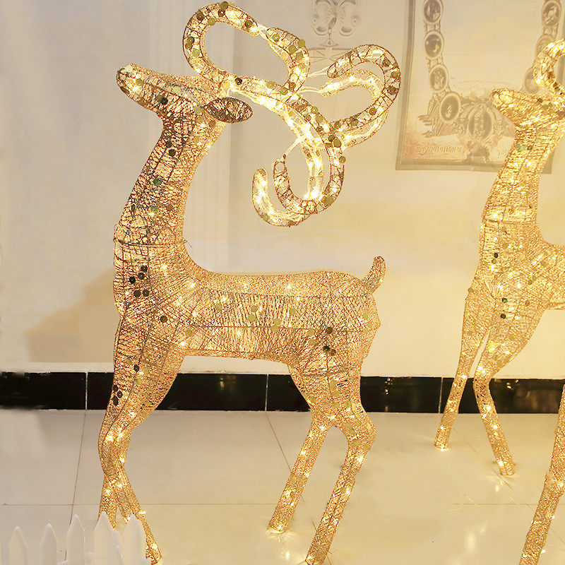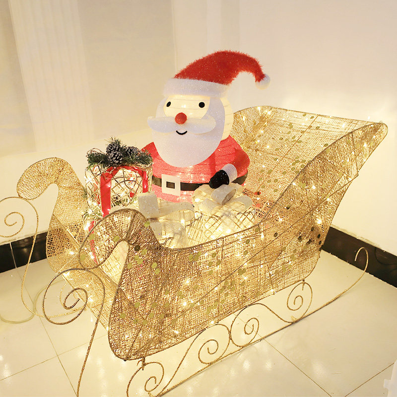 Christmas decoration supplies hotel shopping mall window scene outdoor large-scale decoration wrought iron luminous Christmas deer cart