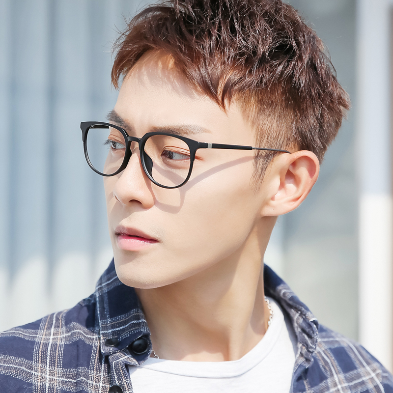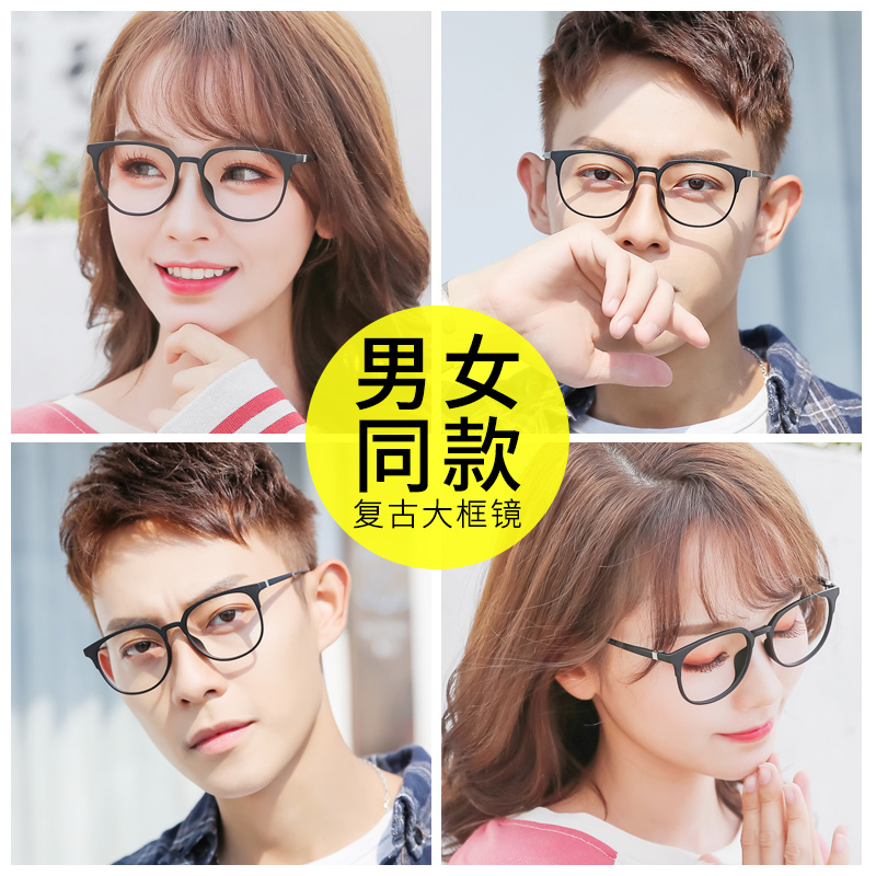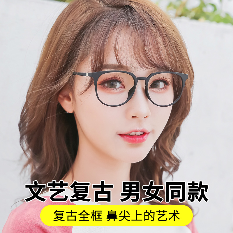 Retro ultralight TR90 nearsightedness glasses male can be equipped with degree eye frame round frame large face slim flat mirror female tide