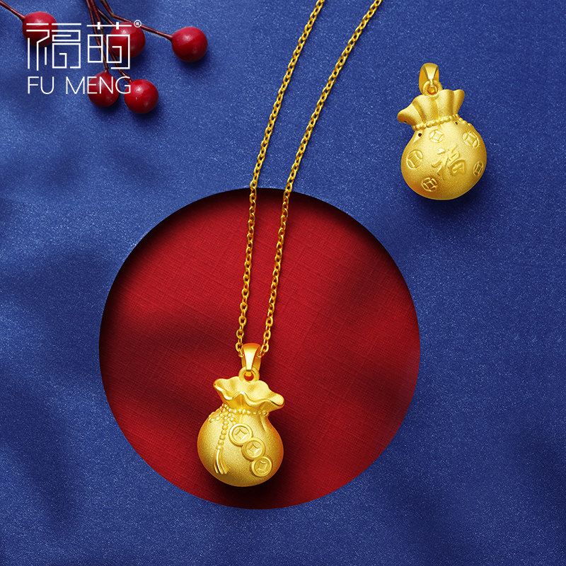 Focute Gold Forwarding Foe Bags Pendant Necklace Women 999 Foot Gold Children's Life Transit Pearl 520 Valentine's Day
