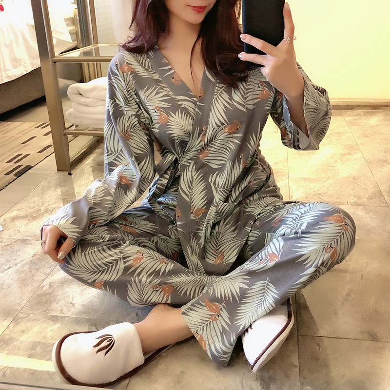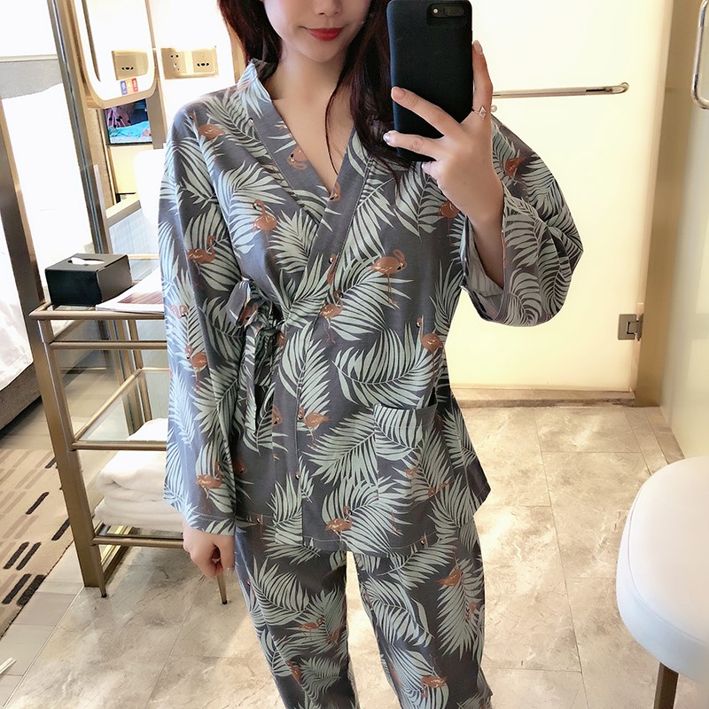 Japanese-style kimono pajamas women's spring and autumn long-sleeved cotton sweet two-piece suit thin section students can wear home clothes
