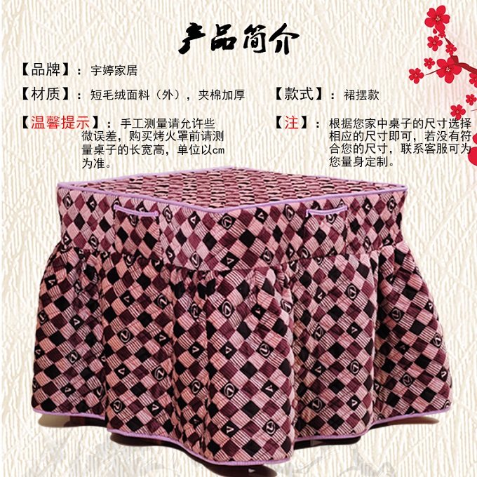 Yuting roasting fire cover electric stove cover new electric heater cover square thickened plus velvet skirt hem roasting fire table cover cover