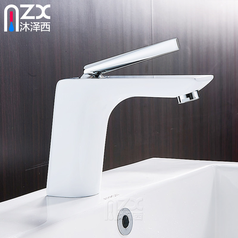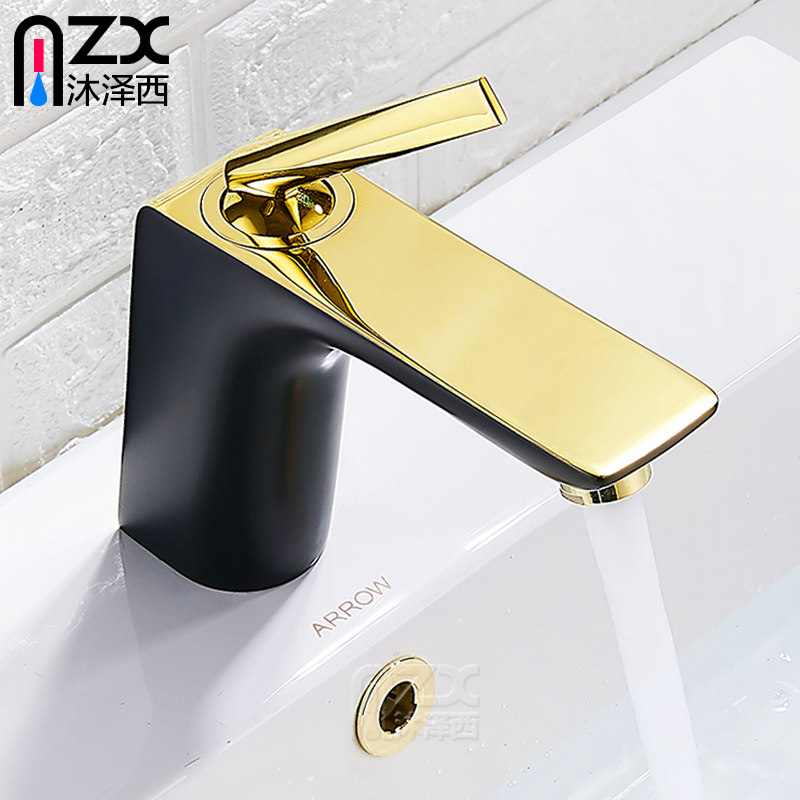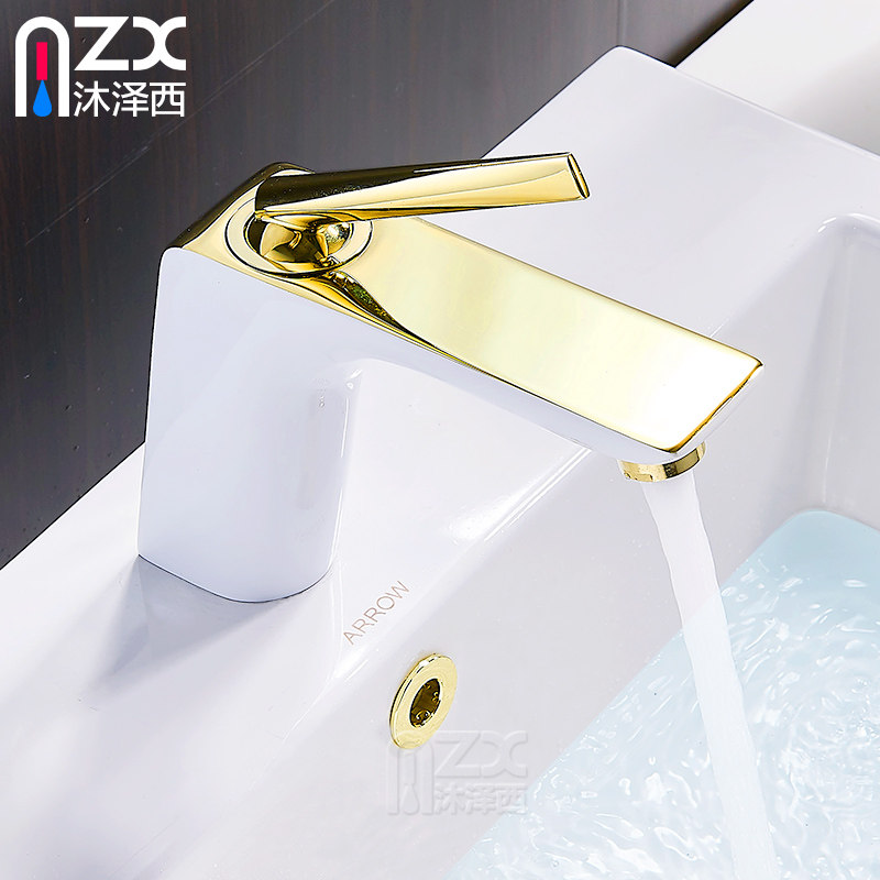 Gold basin faucet Hot and cold all copper art simple Nordic bathroom Modern washbasin white faucet