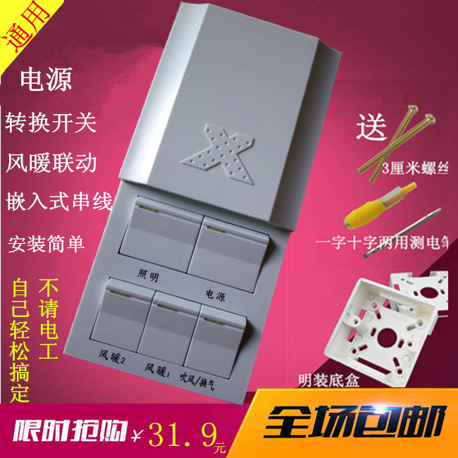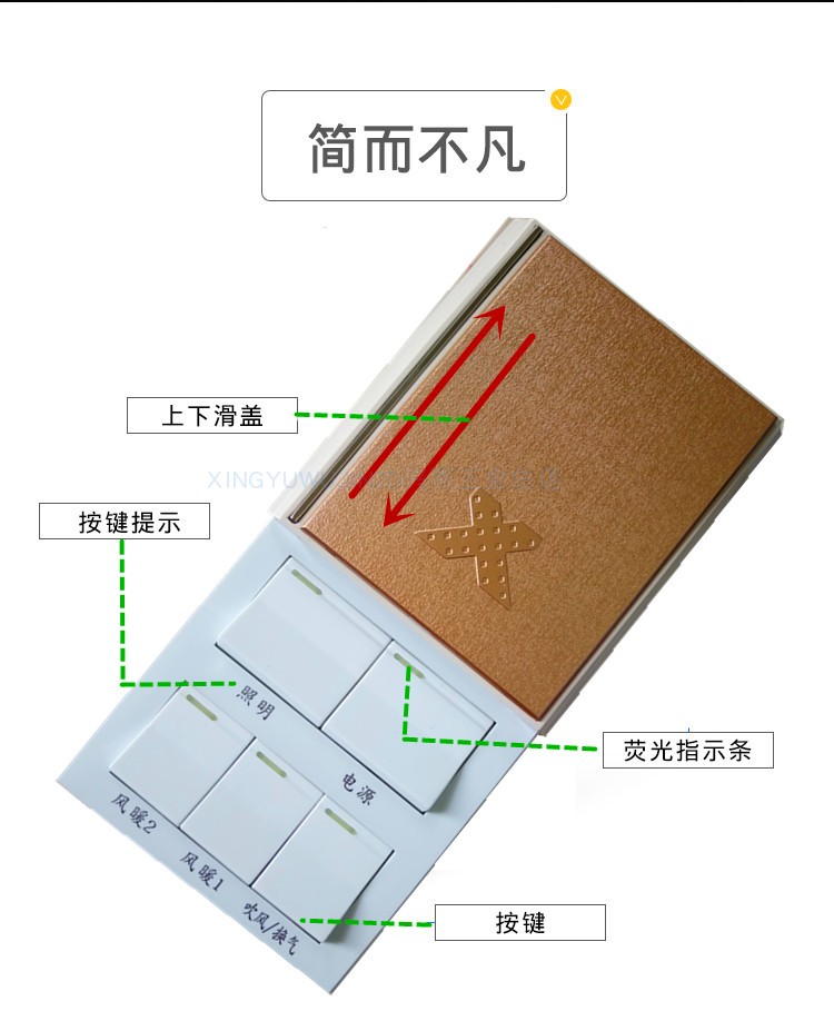Yuba switch five-open maverick 16A bathroom powder room 86 universal four-in-one five-in-one switch waterproof panel