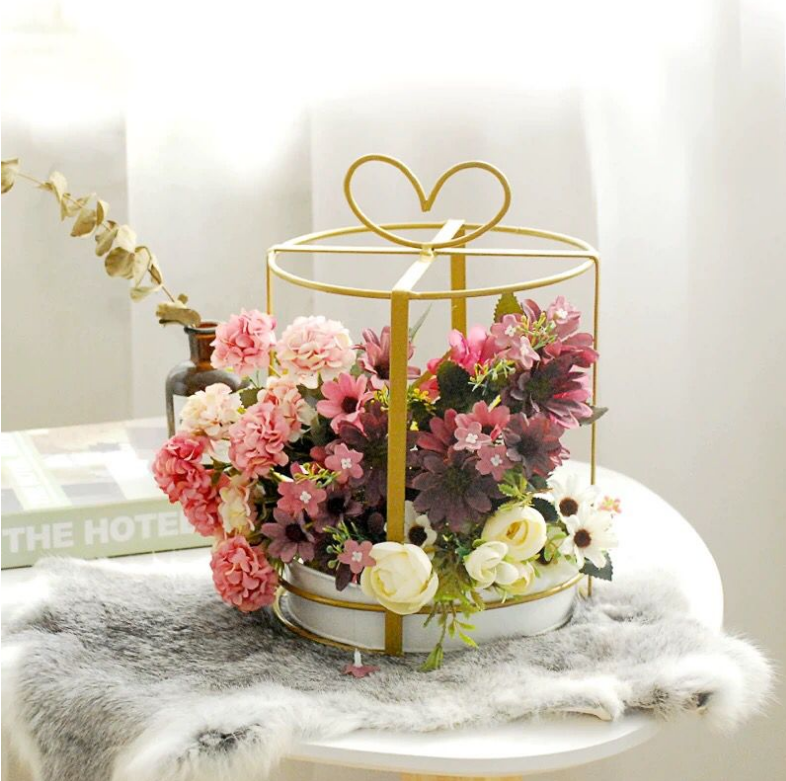 Net red ins Valentine's Day Birthday Cake Decoration Pendulum piece Geometric Metal Iron Art Cake Flower Shelf Birthday Cake Box-Taobao