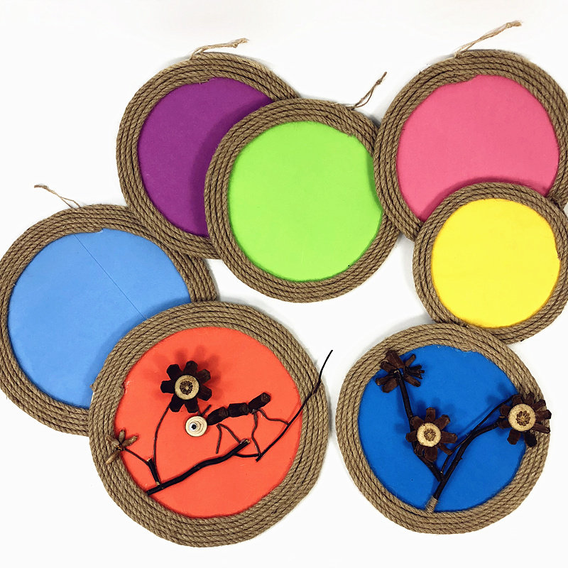 Kindergarten wall decoration classroom corridor hanging hanging colorful hemp rope wood wall decoration ring create theme wall DIY