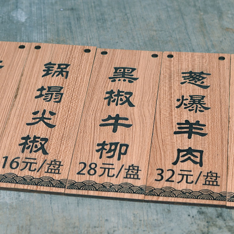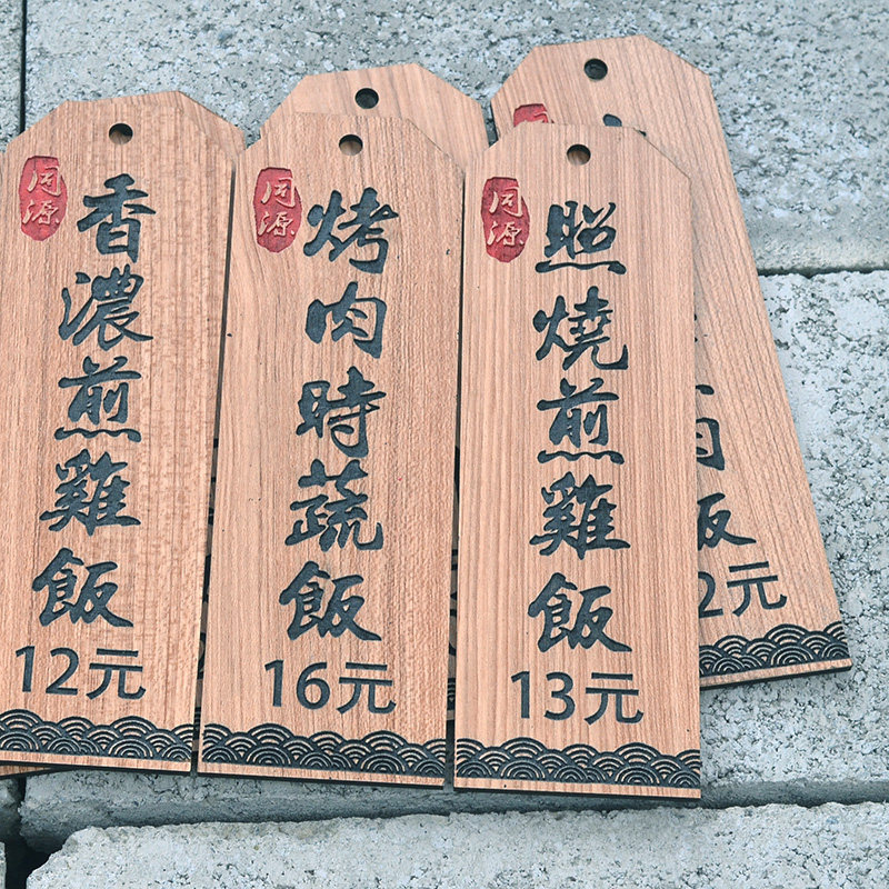 Set to make the carved character wood menu customized creative hanging tag for a small wooden brand special retro wine Chinese style hanging card