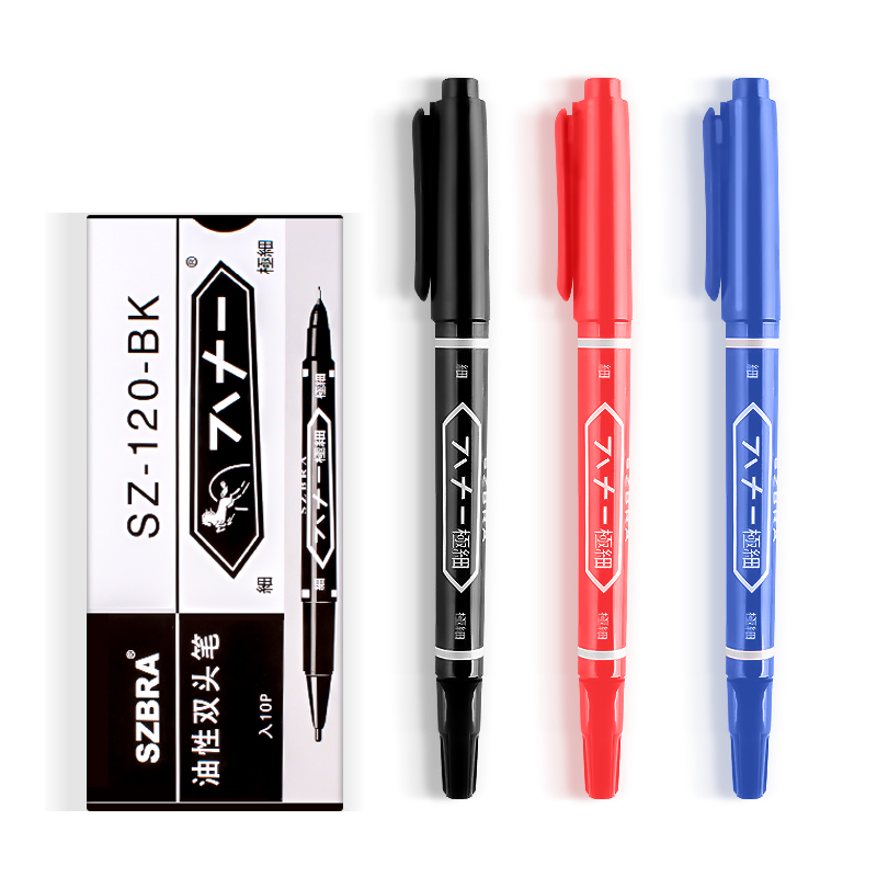 Small double-headed oily marker pen small head fine head hook line pen children's painting students with black stroke quick-drying waterproof
