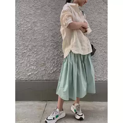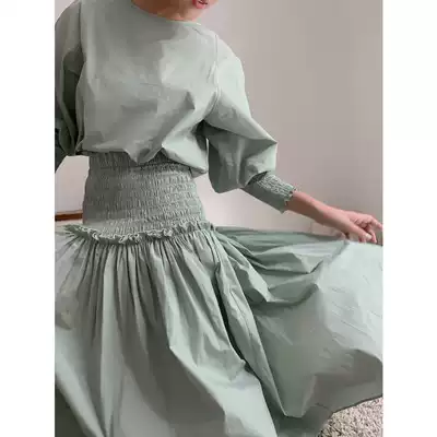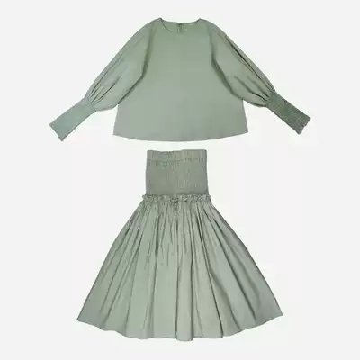 taupe shop fashionable house green set gray-green waist pleated skirt cuffs wrinkled top