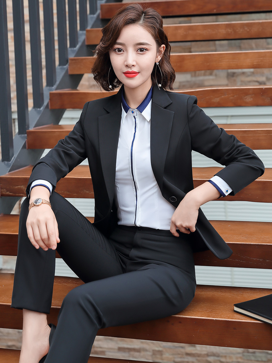 Black jacket (single piece) dark blue jacket (single piece) black jacket short skirt dark blue jacket short skirt black jacket pants dark blue jacket pants black jacket short skirt shirt
