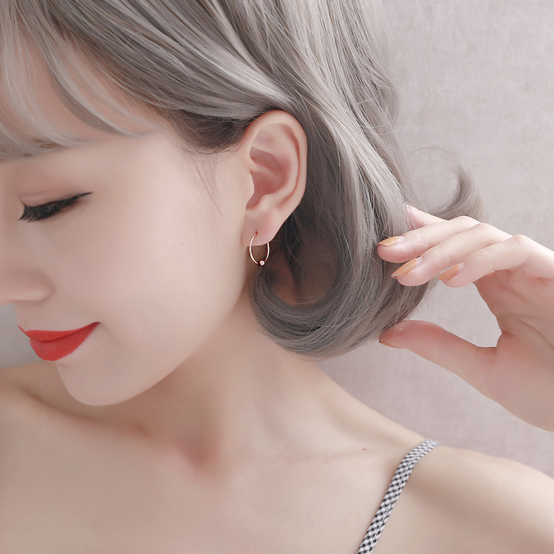 earrings pure silver female s925 earring simple ear button light bead circle Korean personality temperament wave fresh fashion 100 hitch