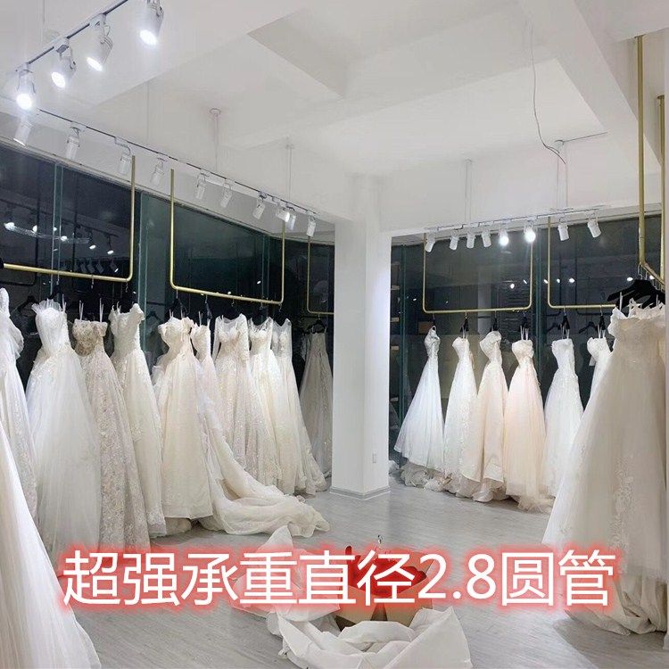 Clothing store display rack gold wrought iron side hanging shelf on the wall ceiling display rack U hanging hanger women's hanger