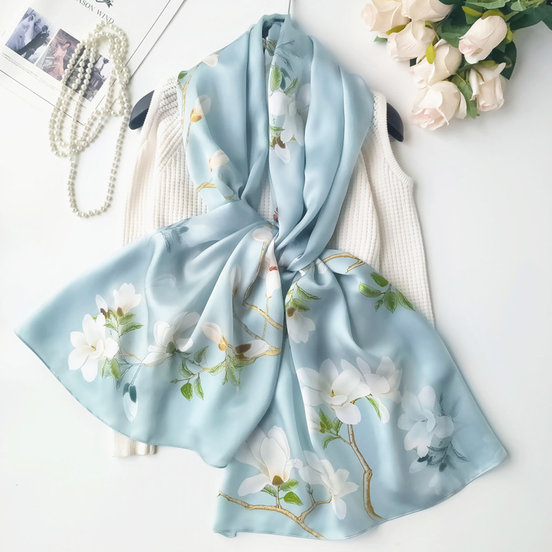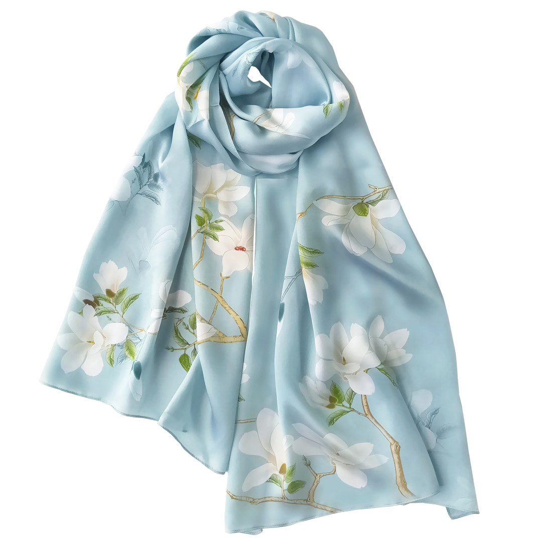 Ethnic wind upscale satin green real silk scarves 100% mulberry silk scarves Hangzhou Silk shawl abroad Gift-Taobao