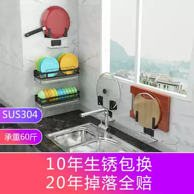 Stainless steel pot cover holder black kitchen rack chopping board chopping board holder wall-free storage layer rack