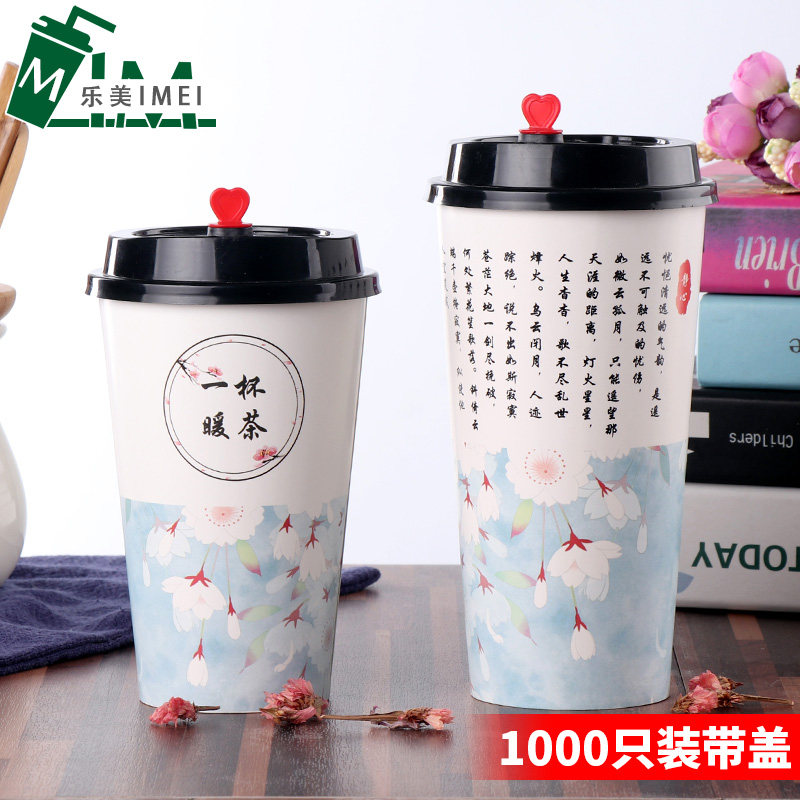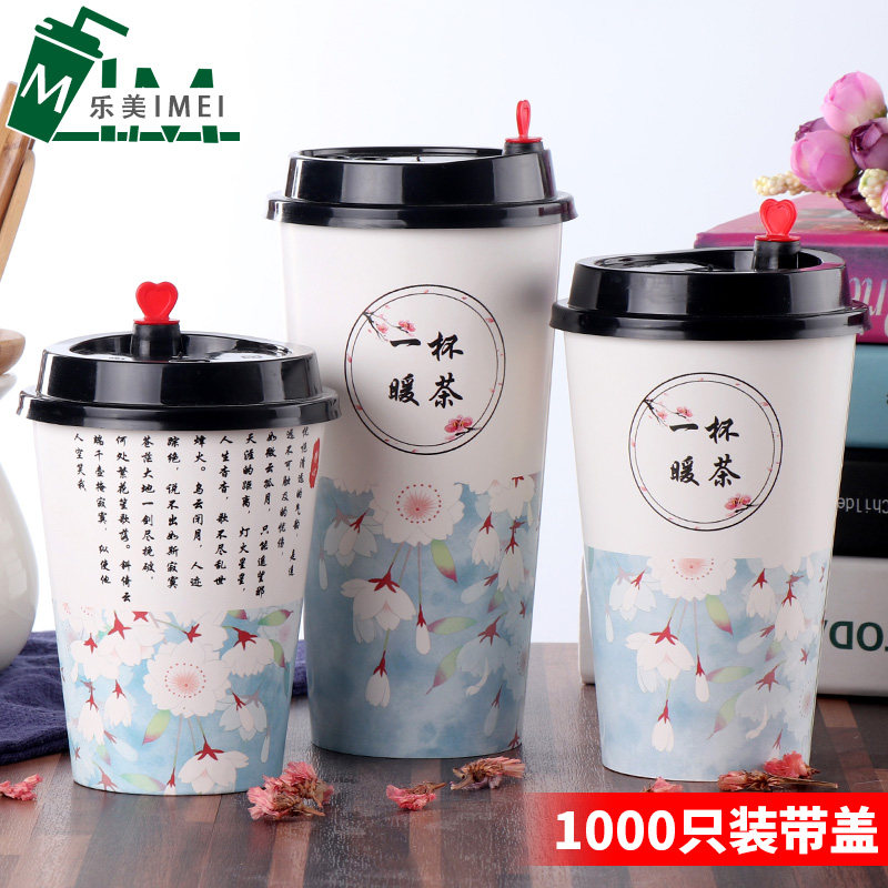 Thickened disposable coffee milk tea paper cup with lid custom logo Hot and Cold Drink soybean milk cup milk tea cup paper cup