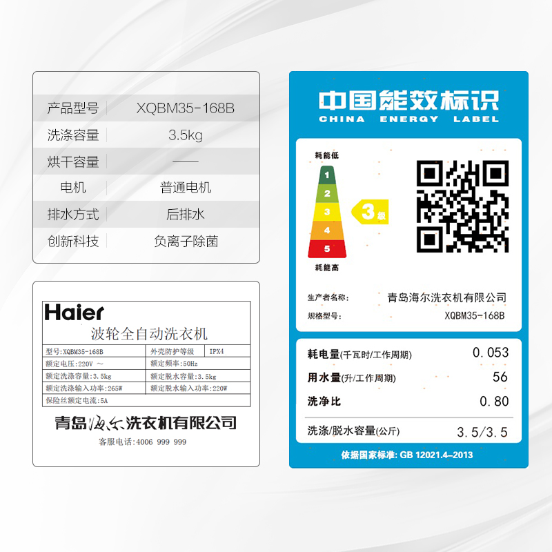 Haier washing machine 3 5 kg mother-child mini-wave wheel washing machine cooking and washing fully automatic XQBM35-168B