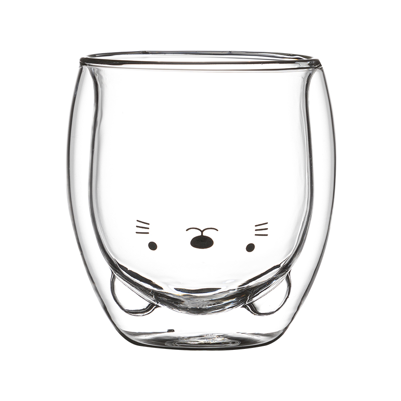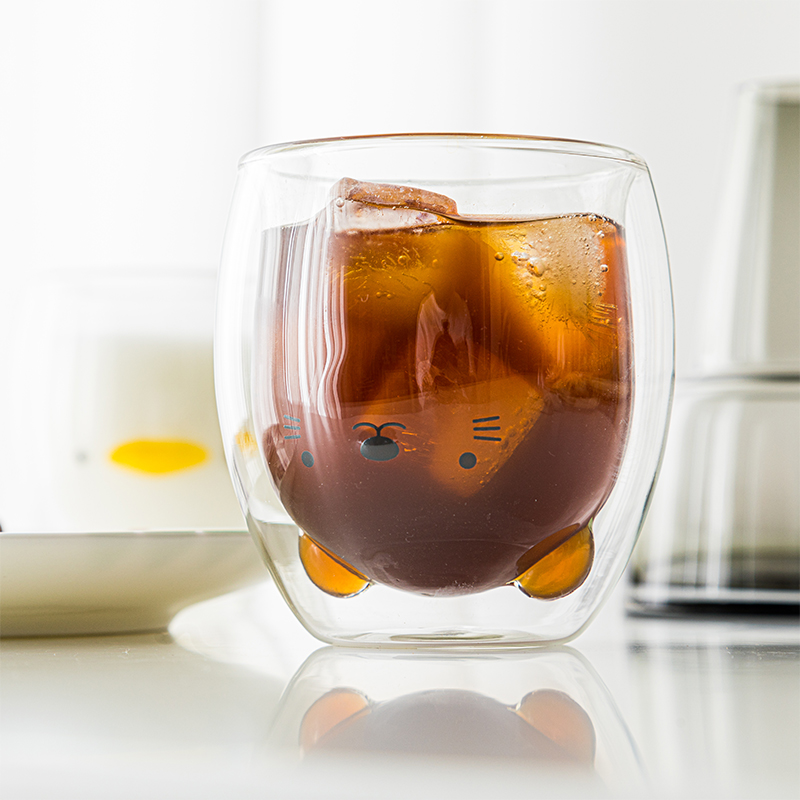 Super cute cartoon double layer glass water glass high face value home net red creative trend upscale transparent drink mug