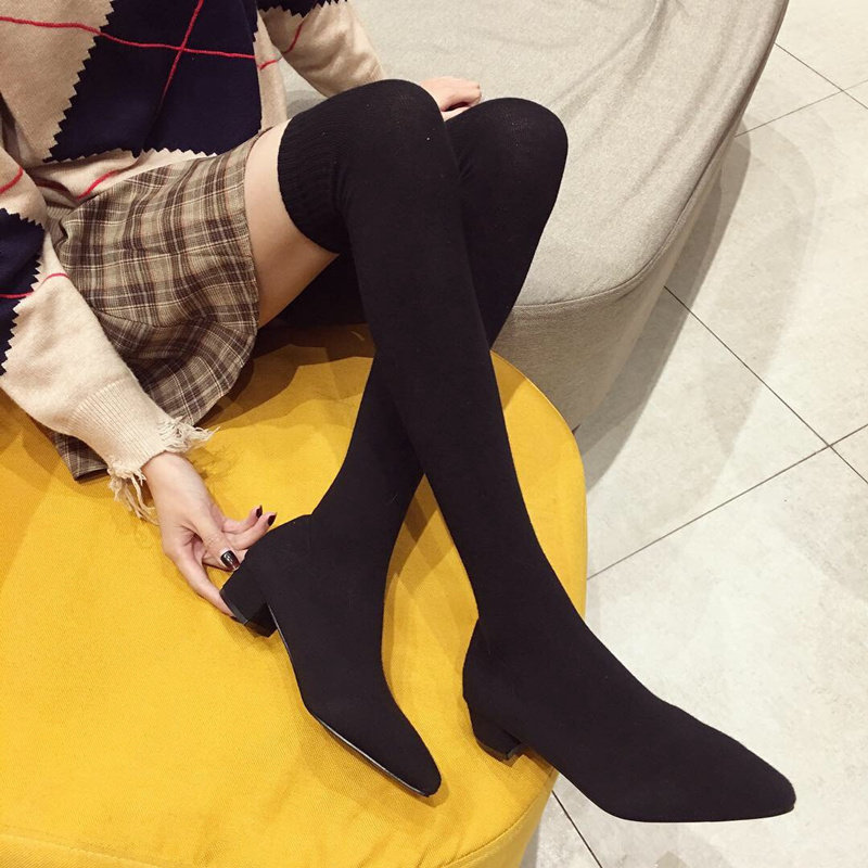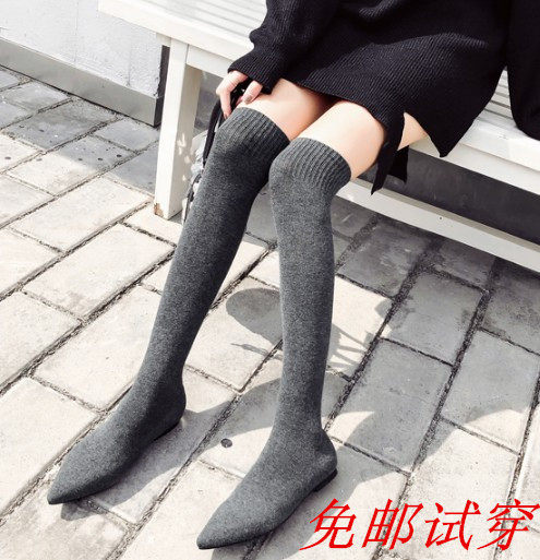 Socks and boots women's 2021 autumn and winter new thin stretch socks and boots women's flat pointed over-the-knee boots long thin boots