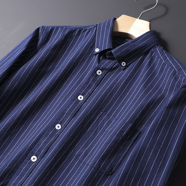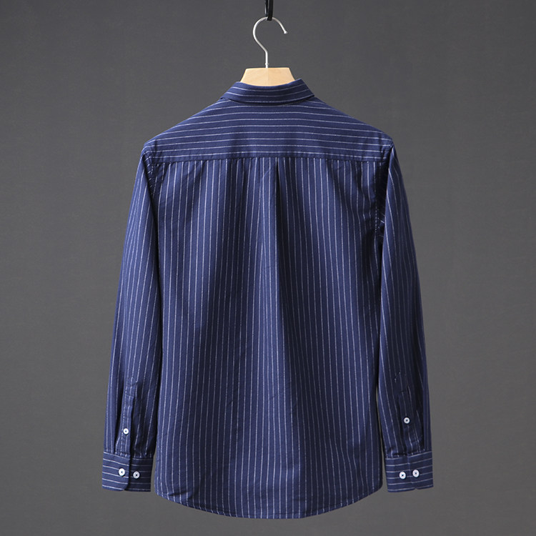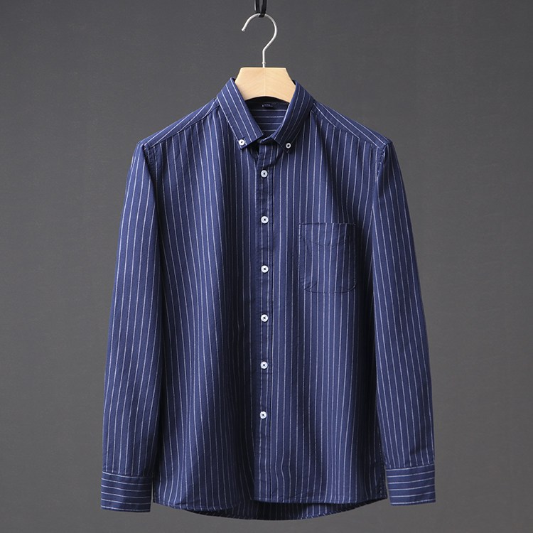My Heart Is Good All-match Striped Foreign Trade Label Scissors Men's Casual Oxford Spinning Long Sleeve Shirt Men's Striped Shirt