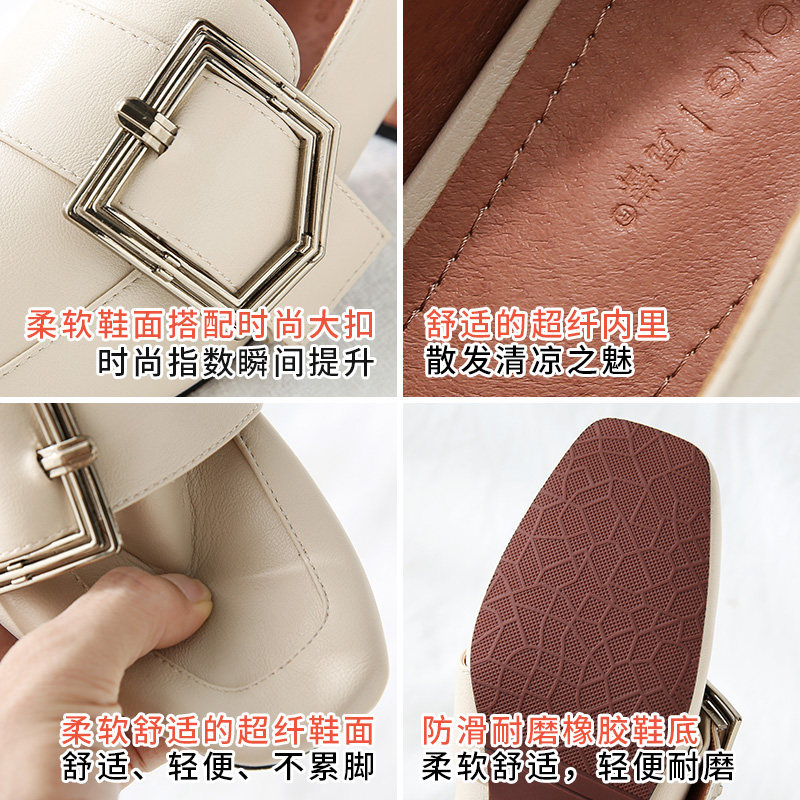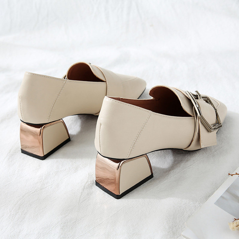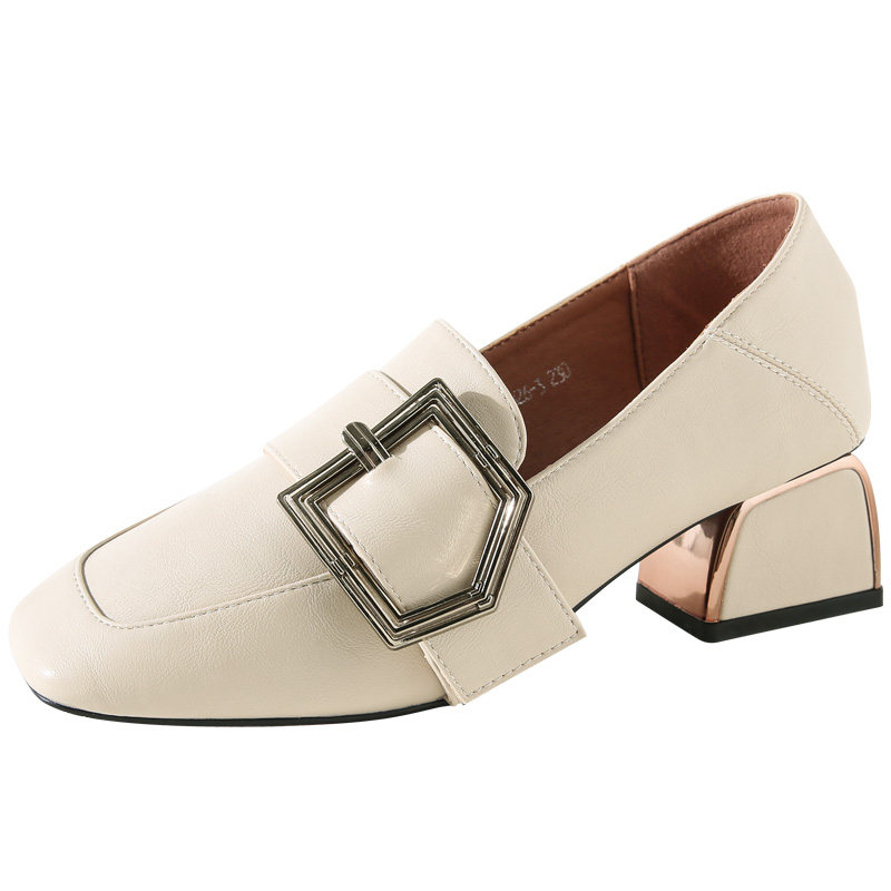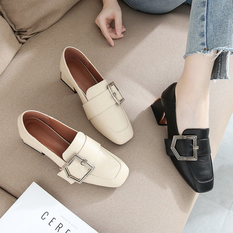 Single shoe woman 2022 new spring Inn wind small leather shoes square head soft leather heel with Lefoe shoes female coarse heel