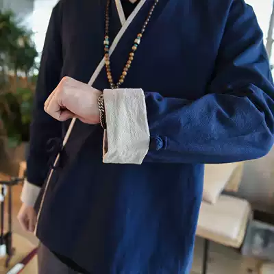 Chinese style slant-breasted Hanfu men's coat robe Tang suit men's summer retro style Buddha system Men's Zen clothes trend