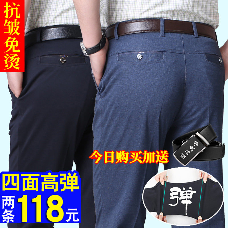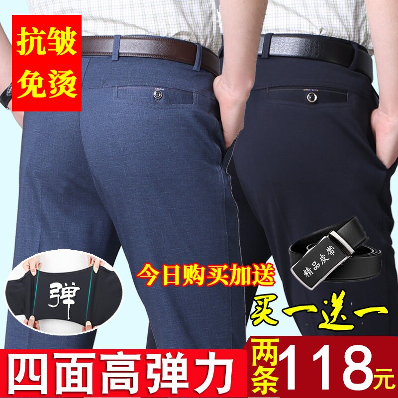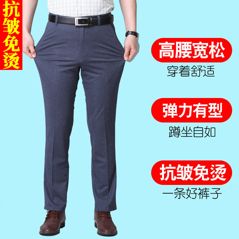 Ice silk casual pants men's summer thin section middle-aged men's suit pants four-sided elastic middle-aged and elderly men's dad pants