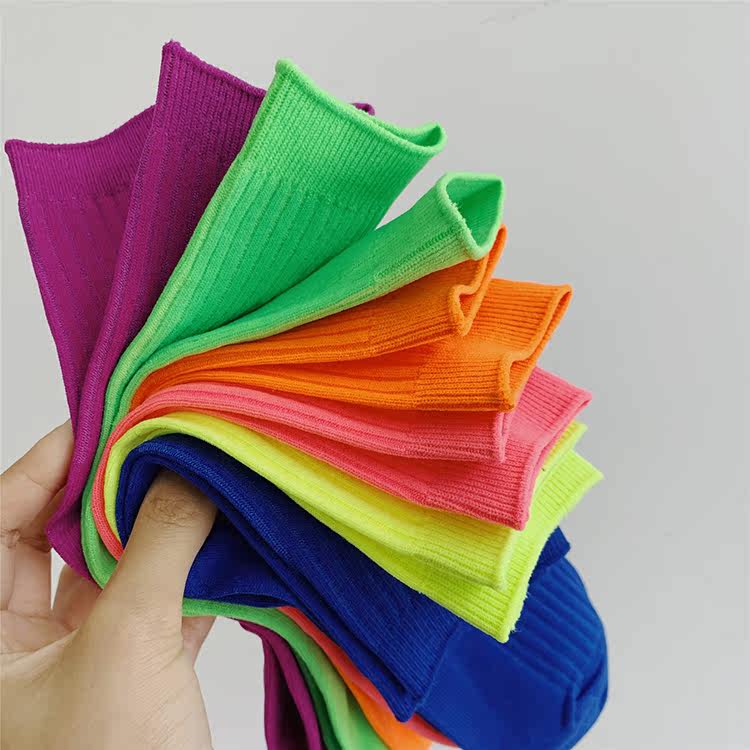 Trendy fluorescent socks women's orange socks candy-colored socks