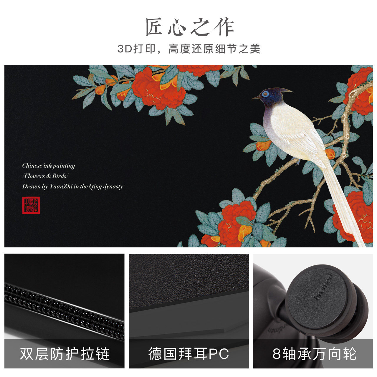 Forbidden City Flower and Bird Olive Green Palace Flower Bird Black Forbidden City Flower and Bird Naked Pink