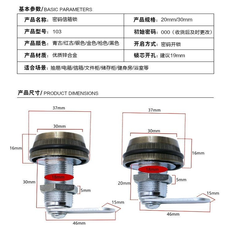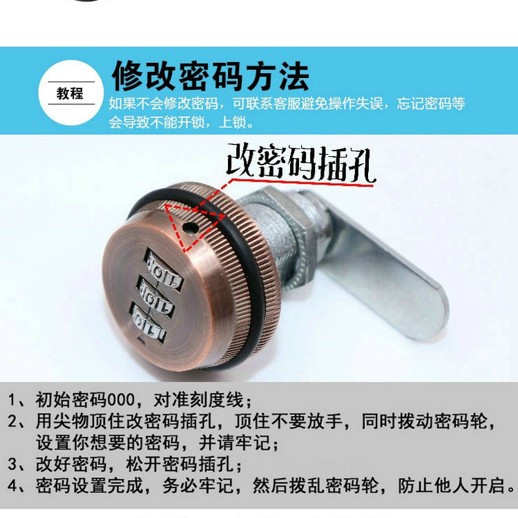 Desk drawer combination lock furniture lock iron locker file cabinet cabinet door lock letter box turn tongue lock milk box