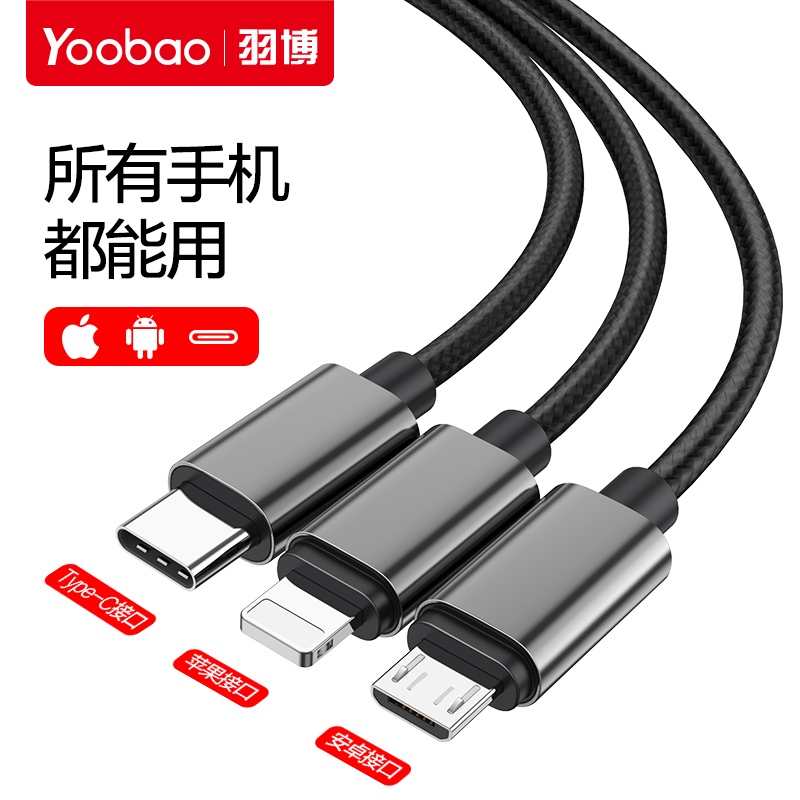 Plumber three-in-one line Three-use data line usb one drag three heads three heads suitable for oppo Apple 7 phones 6s Android Huawei type-c on-board charging wire fast charging three-head charging wire