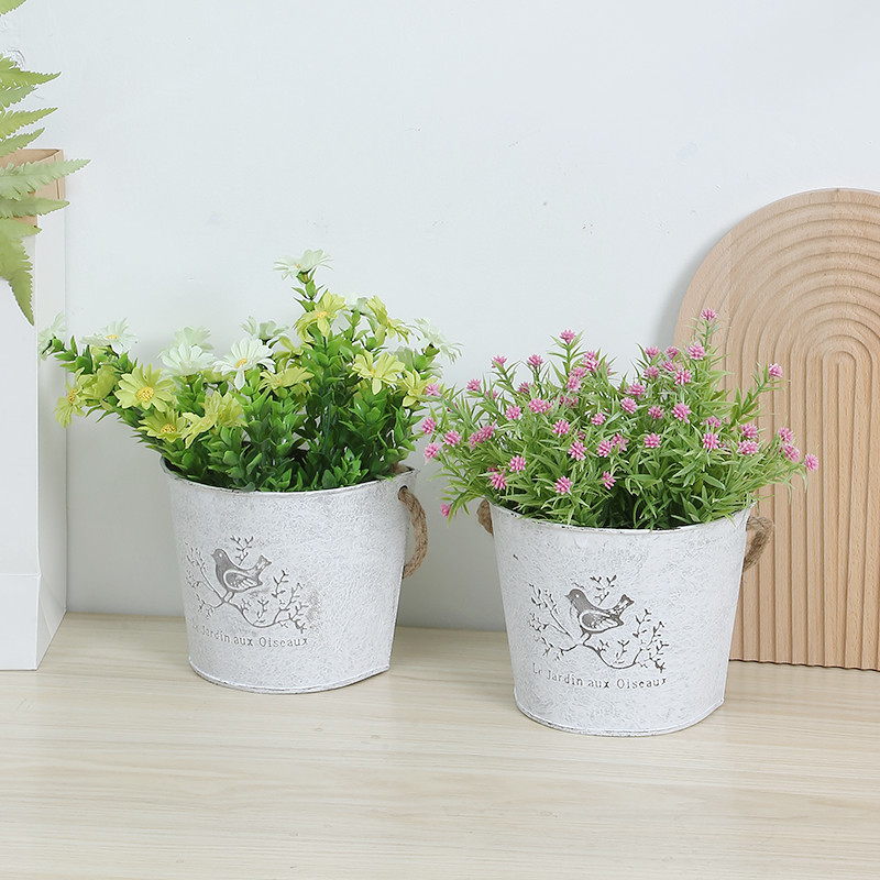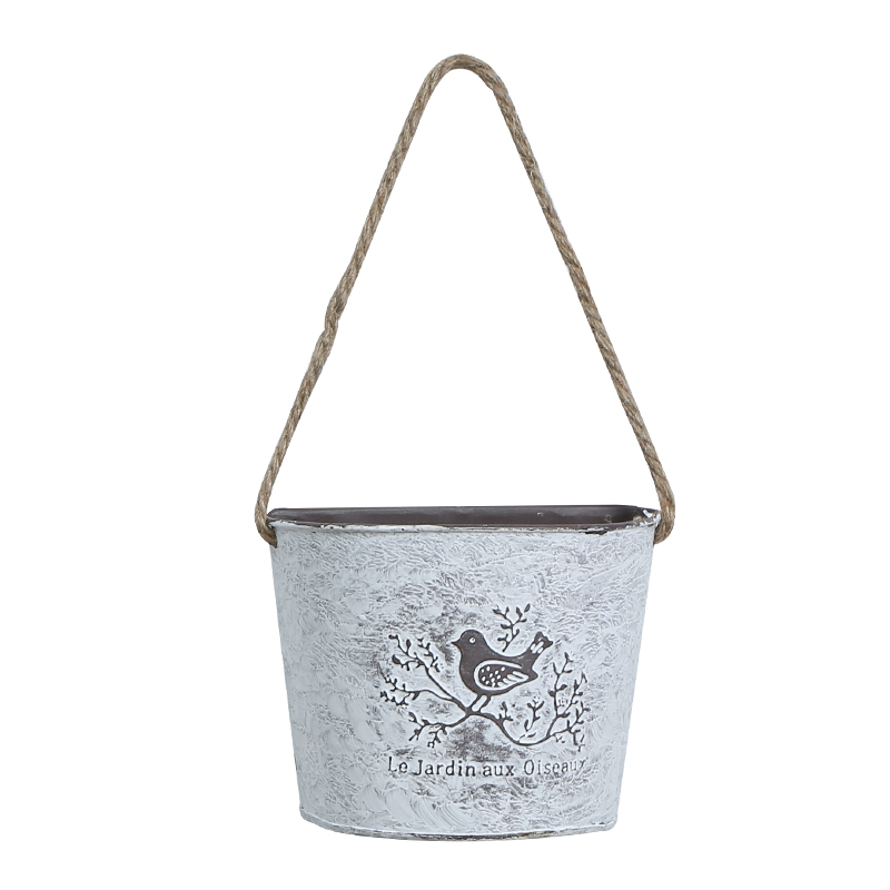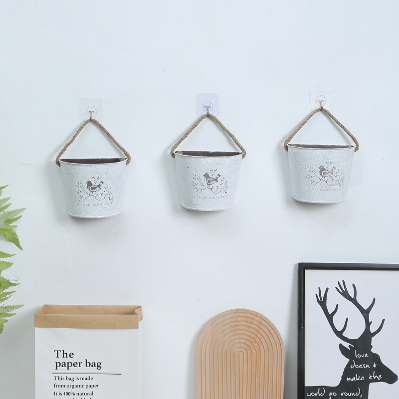 American rural iron-leather flower bucket retro-made old barrel wall hanging iron floral pot clothing store decoration