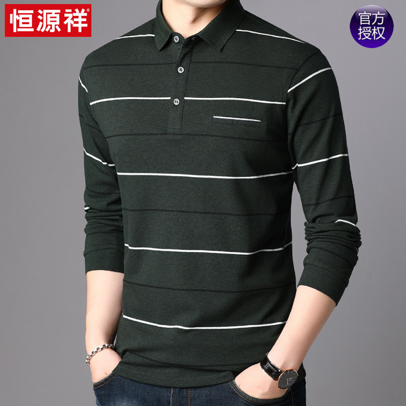 Hengyuanxiang Long-sleeved T-shirt men lapel daddy outfit middle-aged polo shirt casual Korean version of the trend of autumn T-shirt clothes