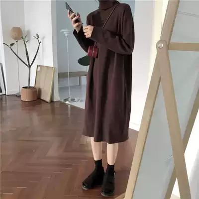 Autumn and winter long-sleeved knitted dress loose mid-length version of the inner tie bottoming skirt French over-the-knee first love turtleneck sweater skirt