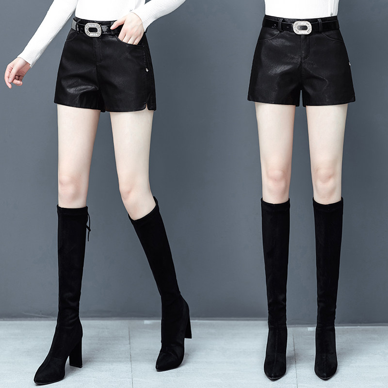 A word leather shorts women's 2019 new autumn Korean edition loose PU leather pants women's earth shorts wear autumn and winter boots and pants tide